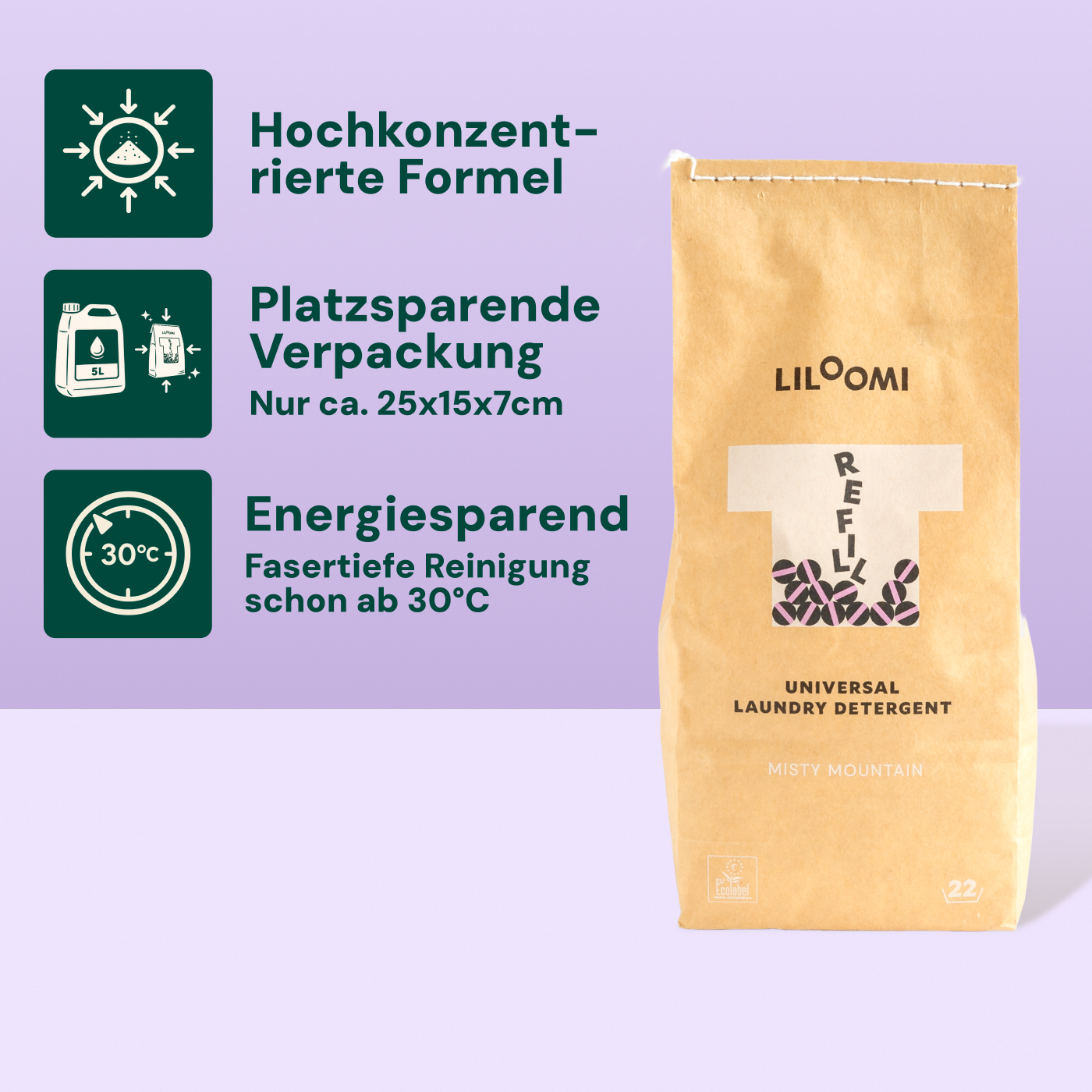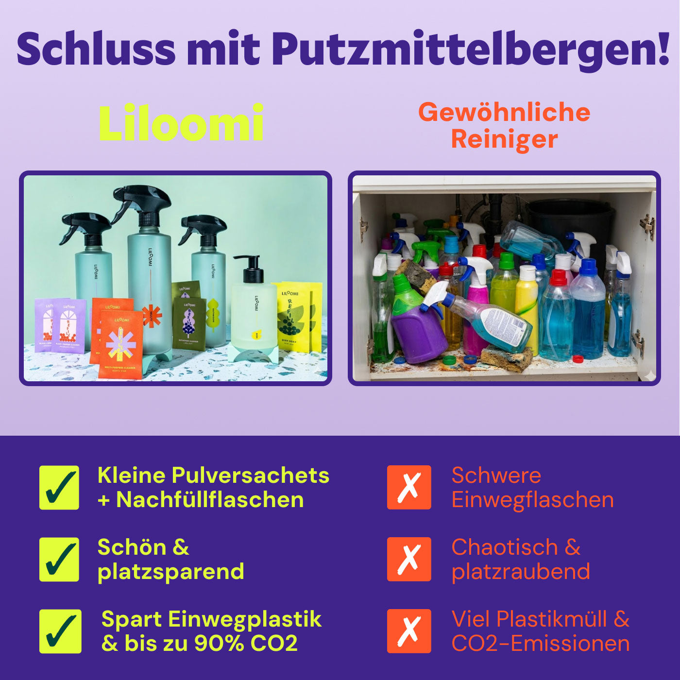 ✔ Reinigerrefills in kleinen, platzsparenden Pulversachets