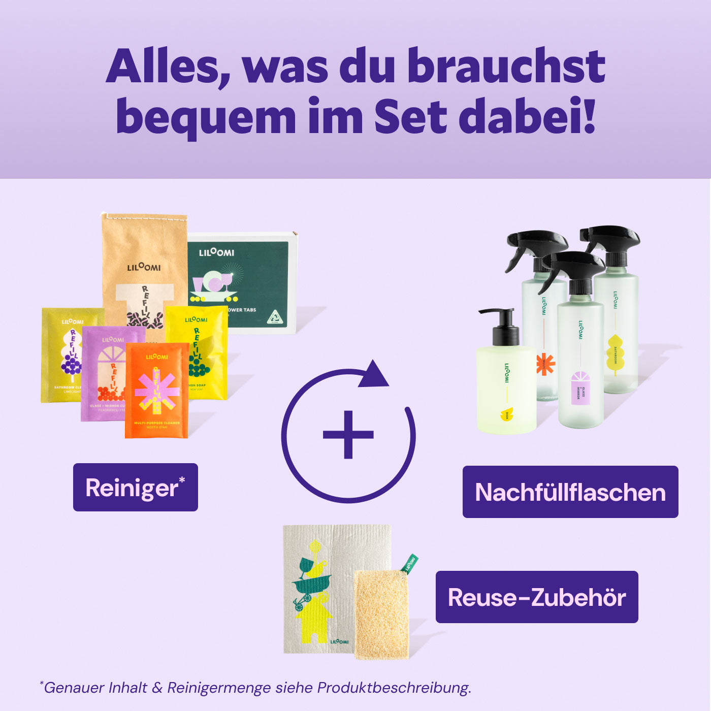 ✔ Set für einen komplett sauberen Haushalt: Reiniger, Nachfüllflaschen & Zubehör